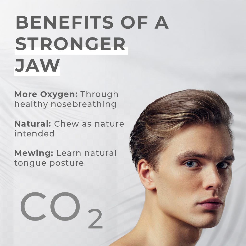 The Jawline Sculpt System is a three-part regimen combining our super-firm Jawline Hard Gum, isometric Rubber Jaw Trainers, and nightly Mouth & Nose Tape to target and develop your jaw muscles for a sharper, more defined profile.