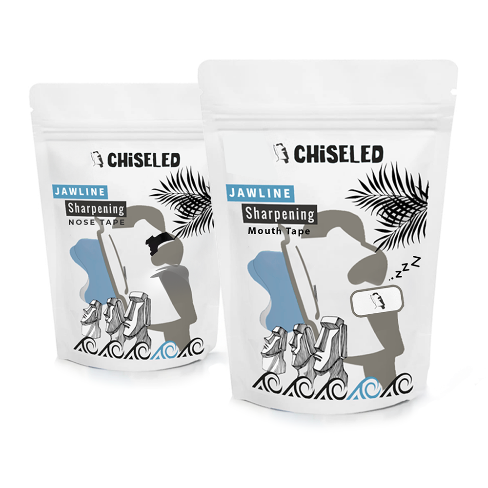 - Chiseled® Mouth Tape: A simple, skin-safe strip that gently seals the lips closed, steering airflow through the nose. By keeping the tongue resting against the palate and the jaw in its natural, forward position, it encourages subtle overnight muscle engagement for a cleaner, sharper jawline.